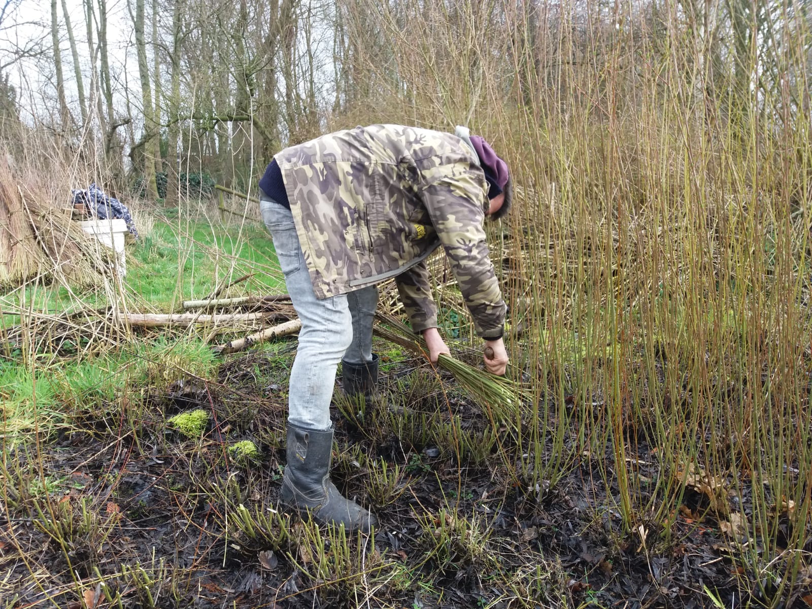 Het proces begint met de aanplant van een wilgenveld in de winter, dit doen we door middel van het in de grond steken van verse stukken afgeknipte wilg (de stekken).